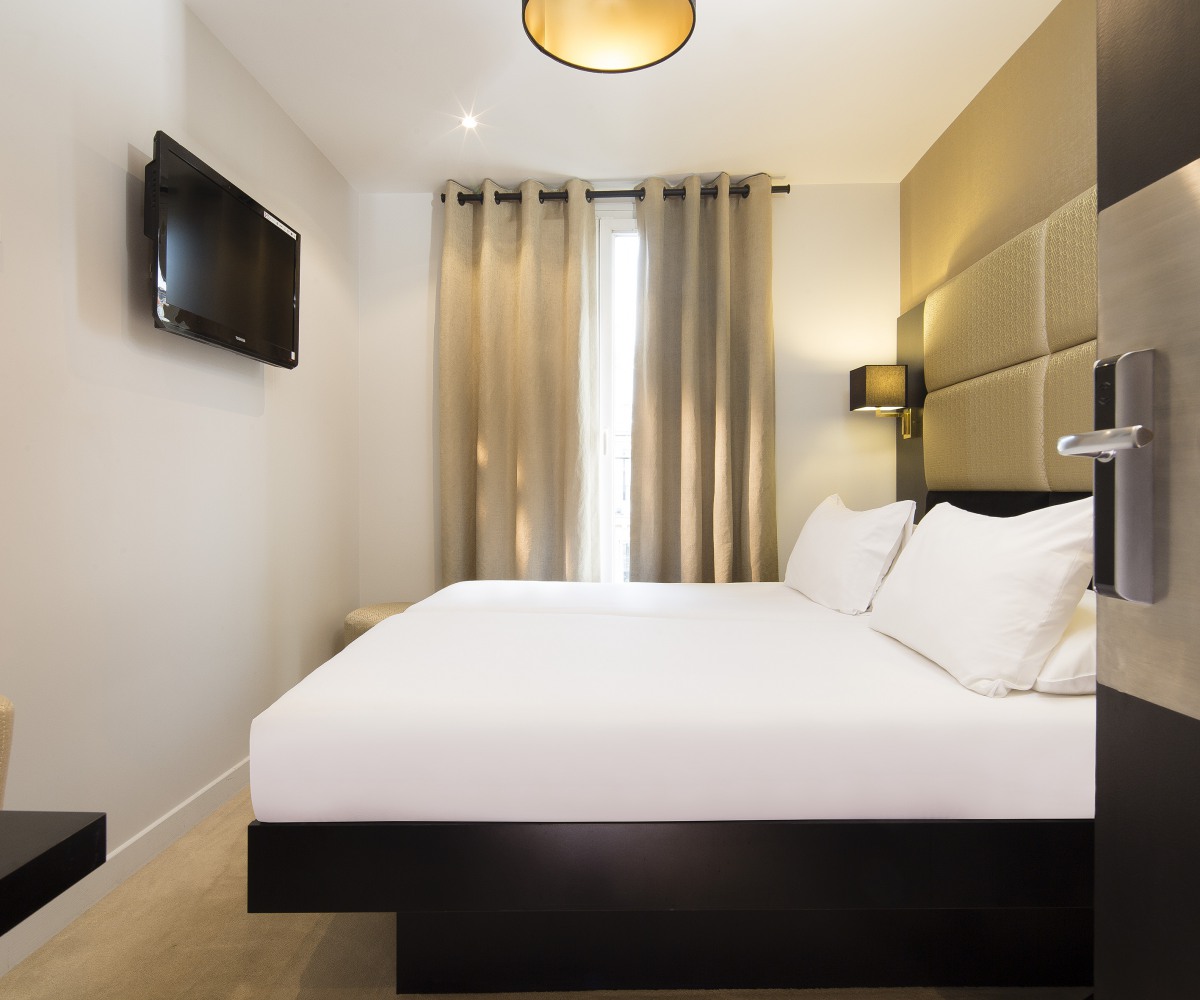 Avec leurs deux lits confortables (avec un matelas d'une épaisseur de 27 cm), leur décor chic et leur concentré d’équipements haut de gamme, nos chambres « twin » sont parfaites pour se reposer après une journée bien remplie dans la capitale.